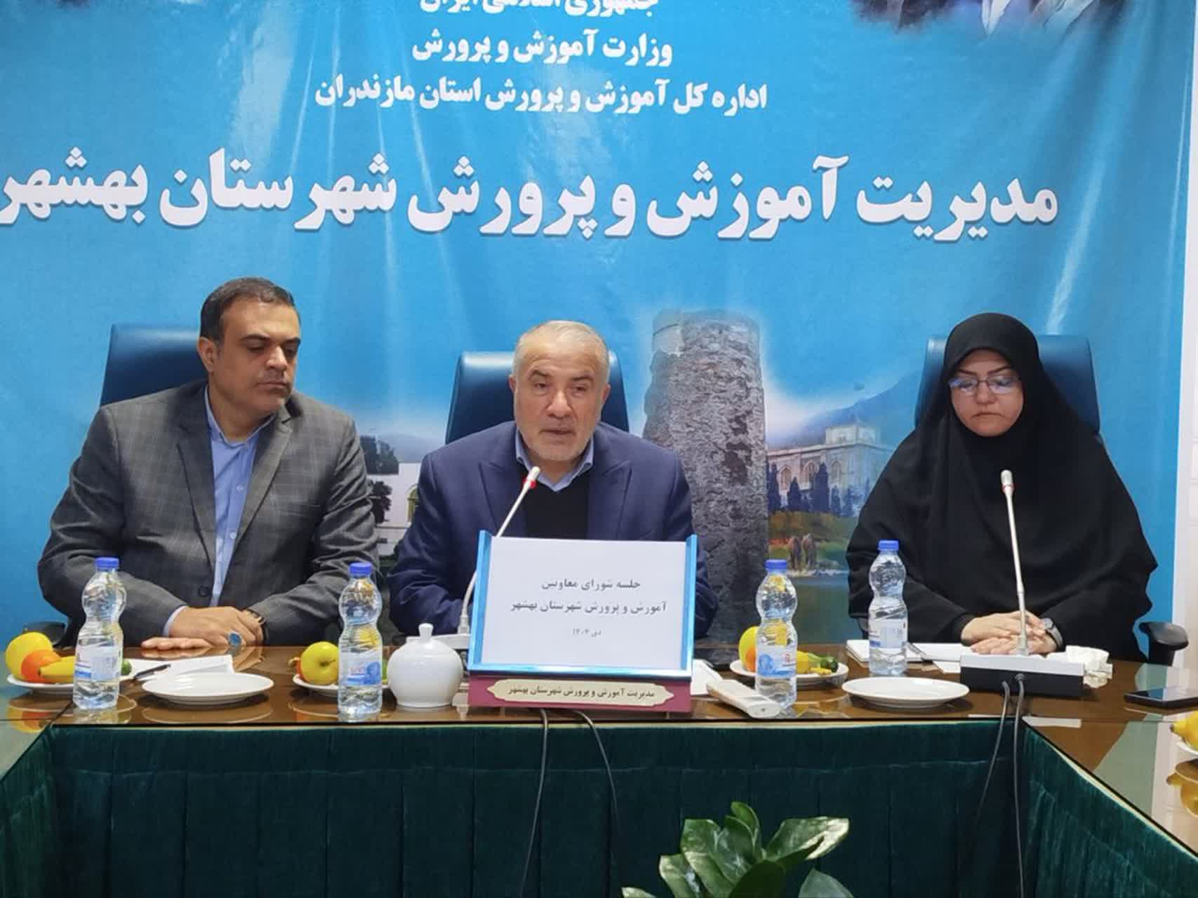 جلسه شورای معاونین آموزش و پرورش شهرستان بهشهر با حضور شریعتی نماینده مردم شریف بهشهر و گلوگاه در مجلس شورای اسلامی، مهدی استادیان ساروی مدیرکل نوسازی، توسعه و تجهیز مدارس استان برگزار شد